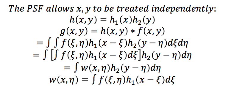 The output is determined by the convolution of the input and the PSF