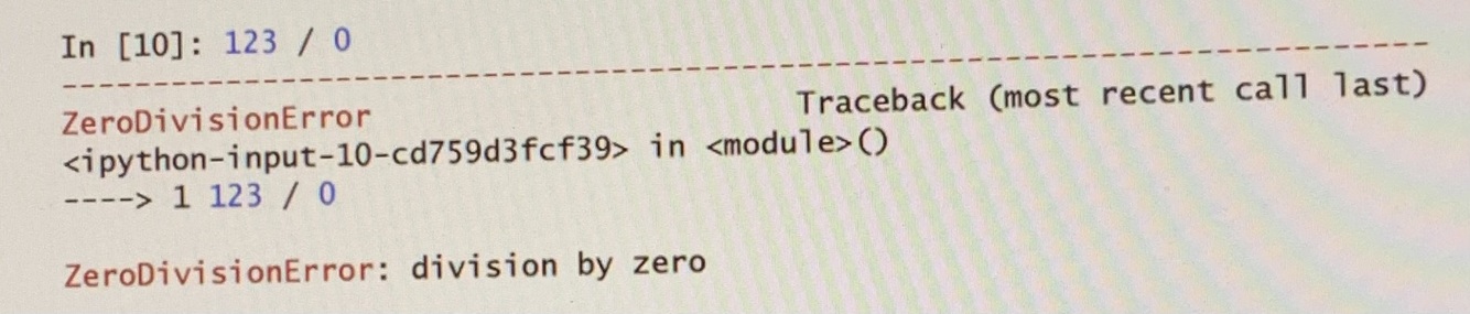 It indicates that an exception of type ZeroDivisionError occurred-most exception names end with Error.