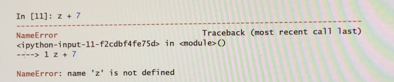 An exception also occurs if you try to use a variable that you have not yet created