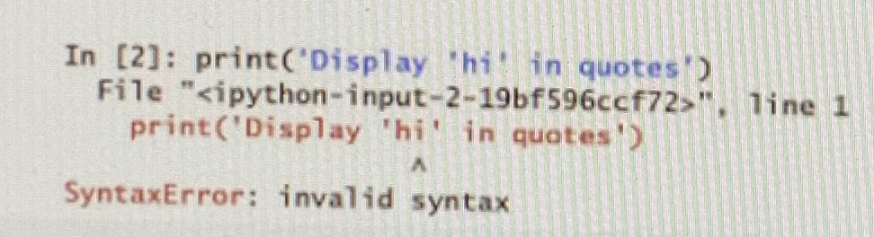 In[1]: print(‘Display “hi” in quotes’)