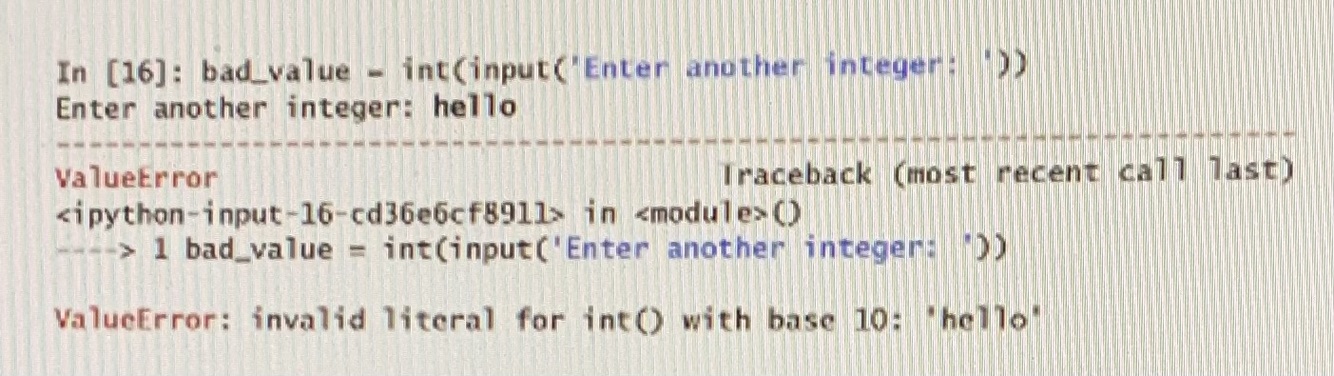 In[13]: value = int (input(‘Enter another integer: ‘))