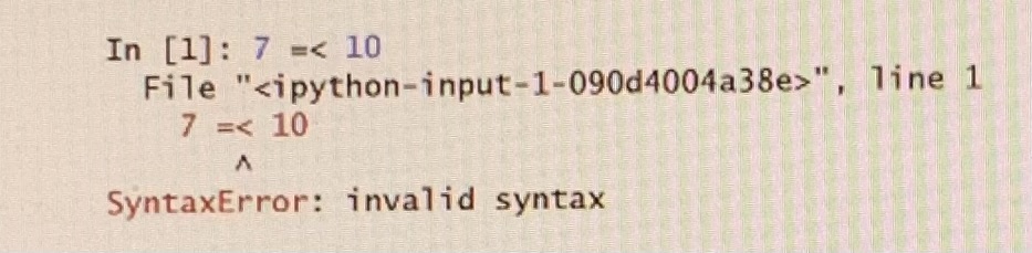 For any of the operators !=, >= or <=, show that a syntax error occurs if you reverse the symbols in a condition