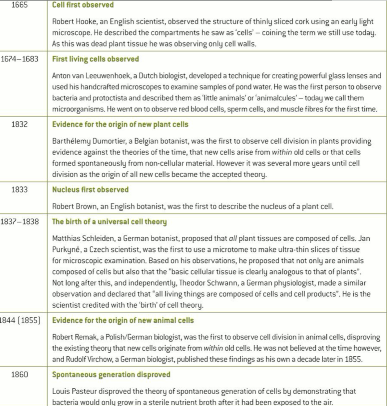cell theory timeline