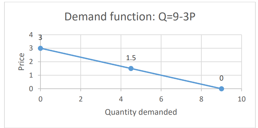 Aliceβs demand for coffee can be expressed as a function:Q = 9 β 3π , the demand curve for coffee then can be drawn as: