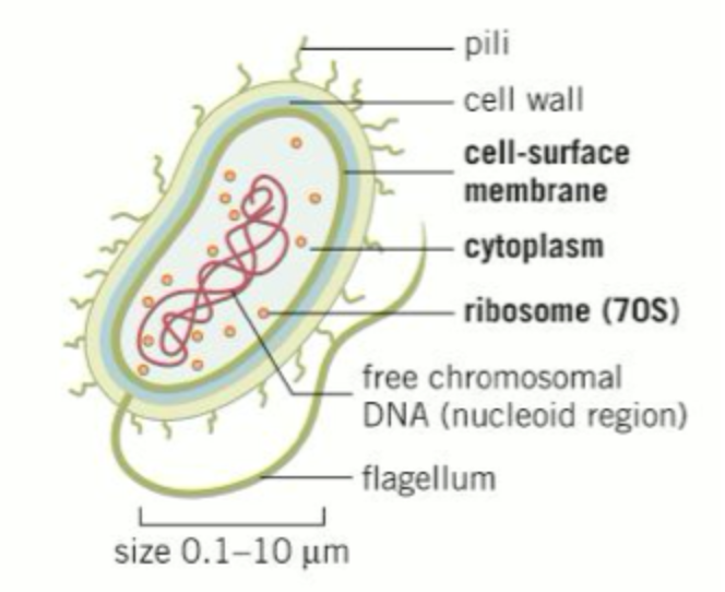 Their DNA is not contained within a nucleus, they have few organelles and the organelles they do have are not membrane-bound.