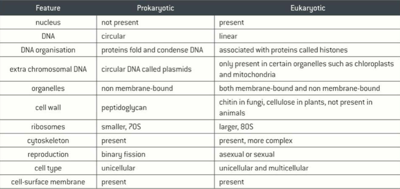 The similarities and differences between prokaryotic and eukaryotic cells: