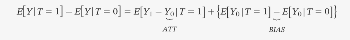 Association can be summarised as the average treatment effect on the treated (ATT) plus a bias term.