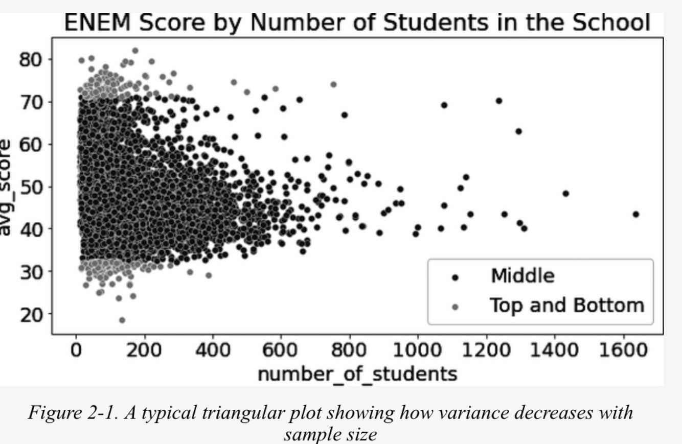 This is a triangle plot, which illustrates how estimates of means of small sample size groups have large variance and it indicates that as sample size increases, variance decreases.