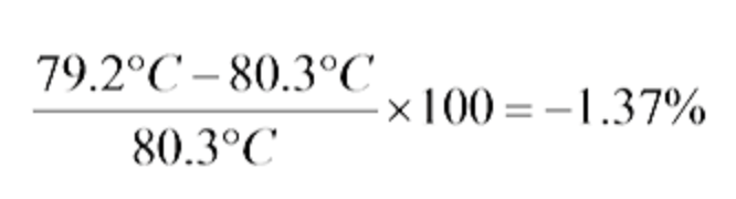 A student experimentally determines the melting point of naphthalene to be 79.2°C. If the accepted value for the melting point of this compound is 80.3°C, what is the percent error in the experimental measurement?