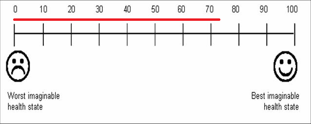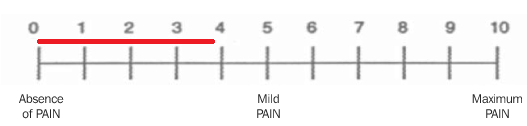 3.9 units. This scale is marked at every one pain unit; we can estimate to the nearest tenth of a unit.