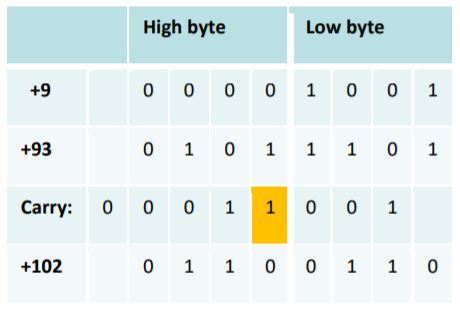 when using Binary Coded Decimals (BCD).This encoding system represents the digits 0-9 with 4 bits (note that there are 16 combinations of 4 bits but only 10 digits – hence there is some redundancy). Arithmetic is more complicated in this system, and at times the value of 6 must be added onto the result of an addition – one of these occasions being if the half-carry flag is set