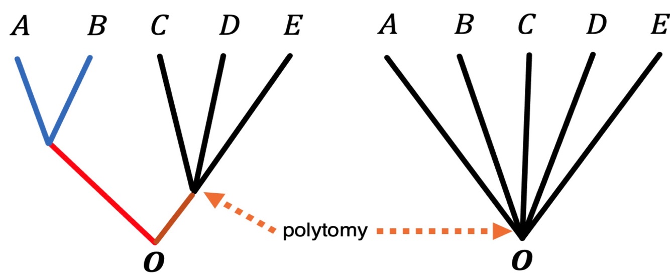 A branch from which more than two groups emerge: 3 or more Taxa coming off of a node