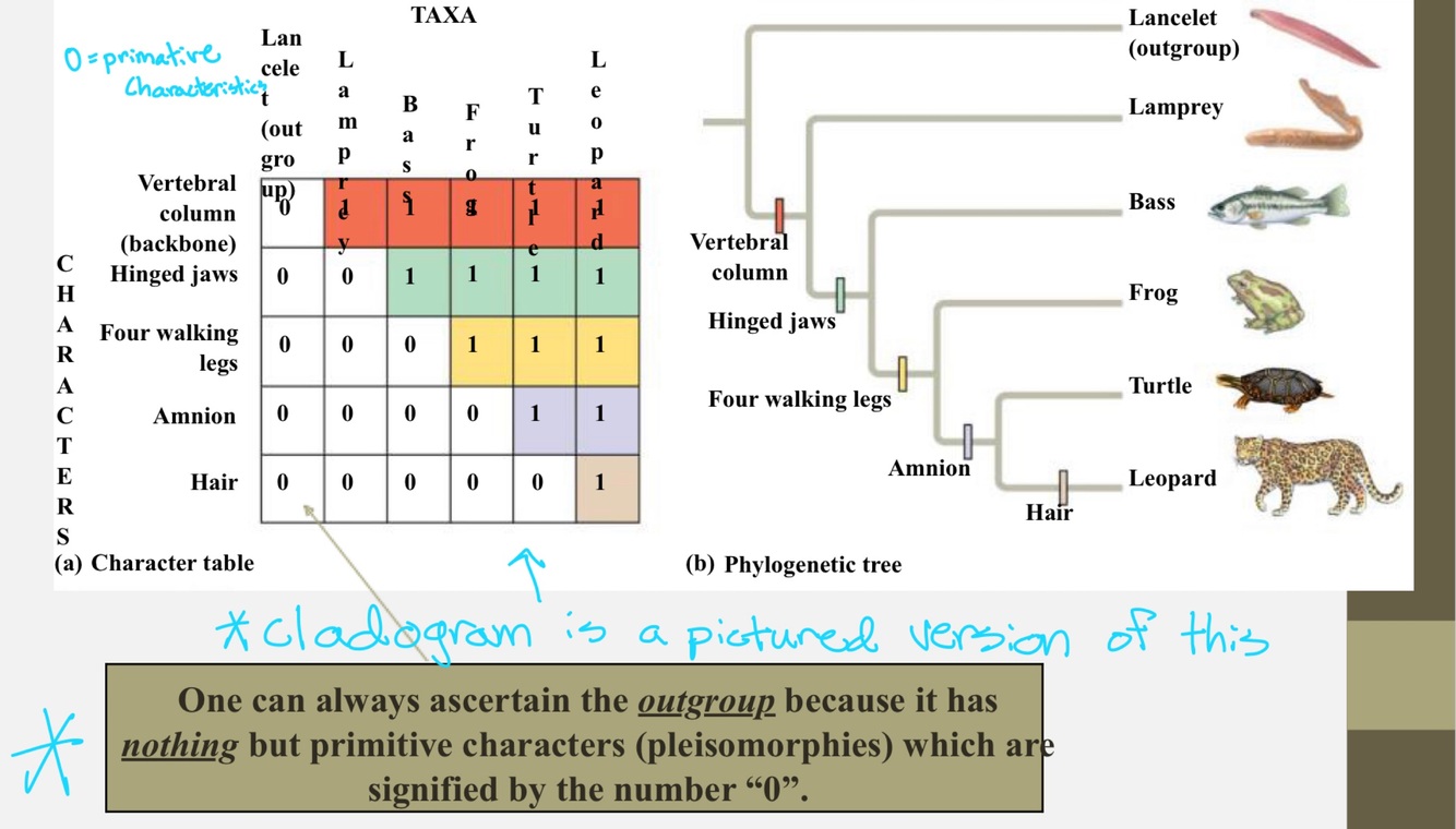 The outgroup shares no characteristics with the primitive, while those in the i group share one or more characteristic with it’s primitive ancestor