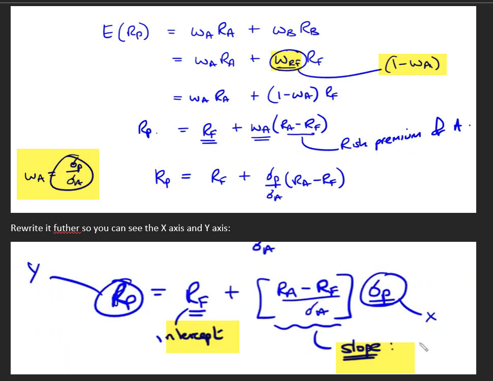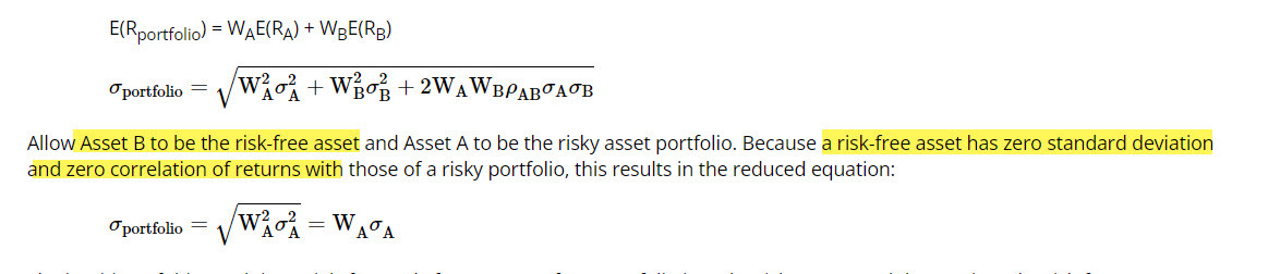 Formula - Risk of overall portfolio that has a combo of risky +Rf