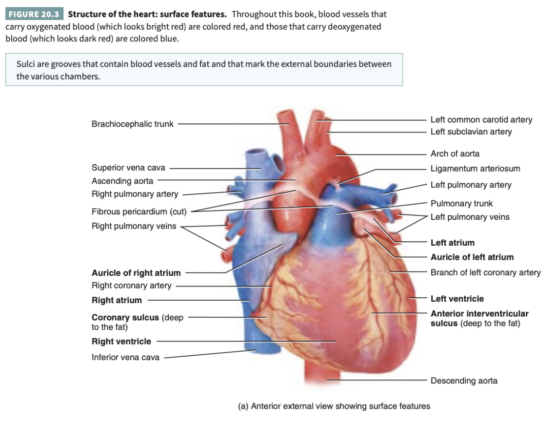 A series of grooves on the surface of the heart that contain coronary blood vessels and a variable amount of fat. Each sulcus marks the external boundary between two chambers of the heart.