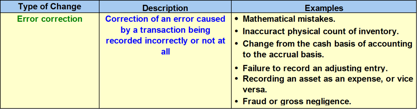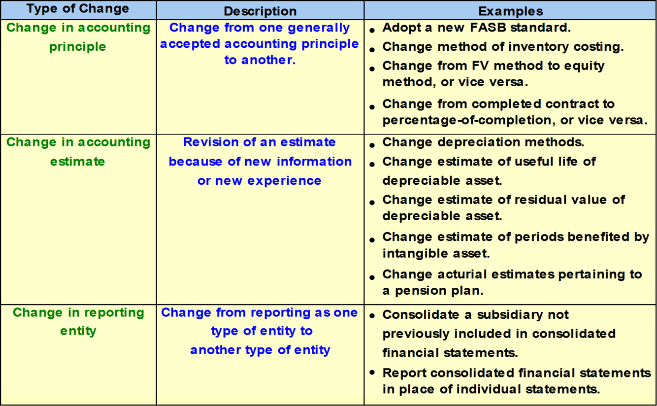 Change in Acc Principle vs Estimate vs Reporting Entity