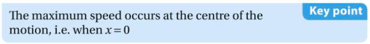 When does the maximum speed occur in simple harmonic motion?