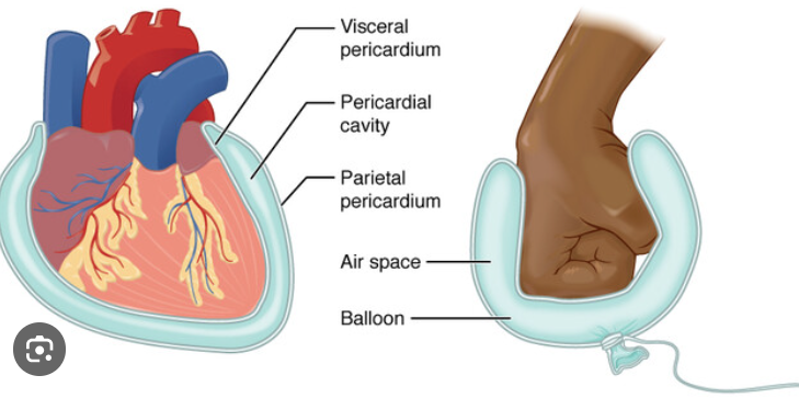 *pericardial fluid is the space between visceral and parietal. Pericarditis.