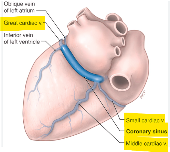name the coronary veins. Remember to use “cardiac” for vein names!
