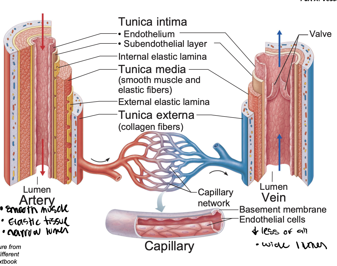 Describe the structures of a blood vessel