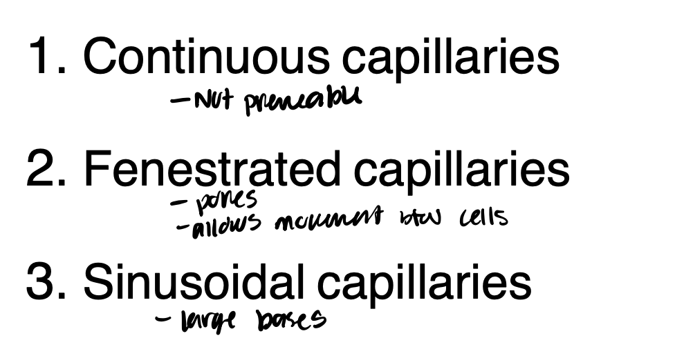 What are the three types of capillaries and their premability?