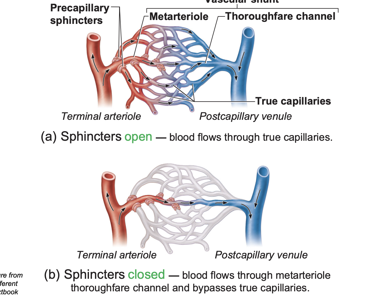 Within the capillary bed, ____ controls flow