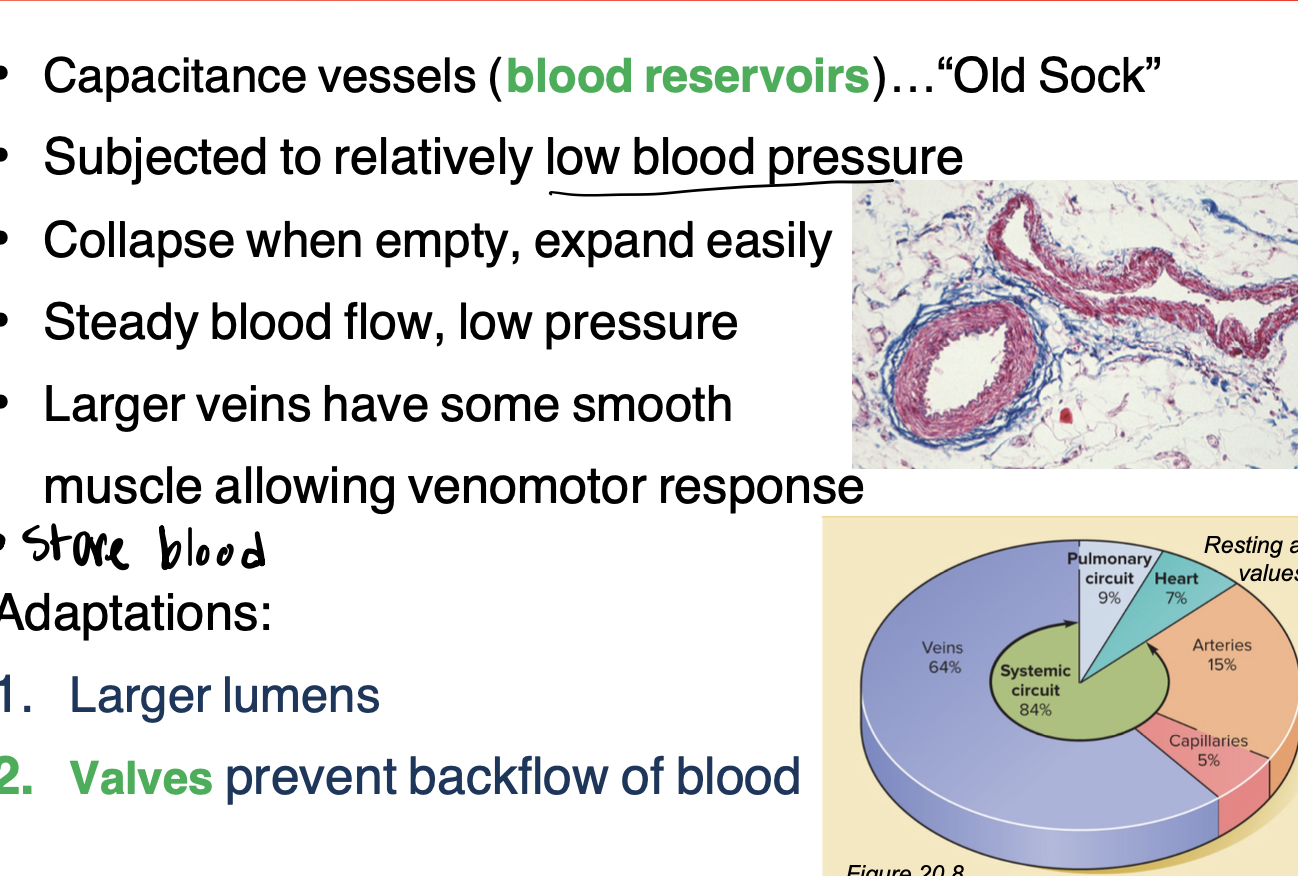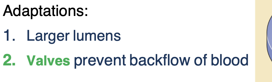 What are the adaptations of veins?