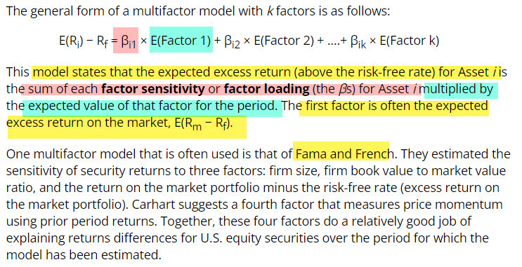 Multifactor Model, interpretation, and which model uses it.
