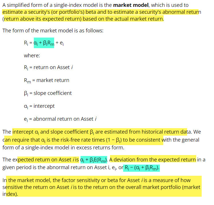 Simplified form of single-index model is market model. What is the formula: