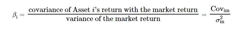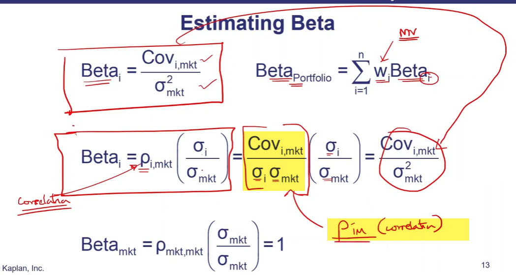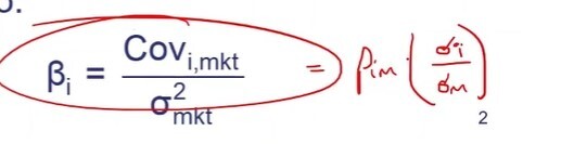Beta Formula: Correlation between returns on asset i with returns on market index