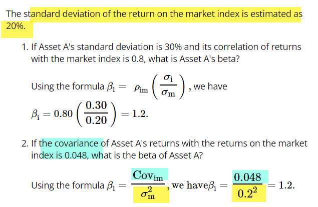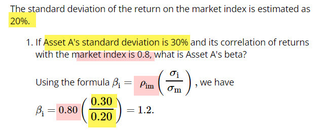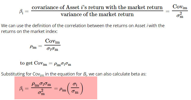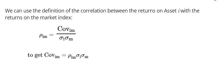 correlation between the returns on asset i with return on market index formula.
