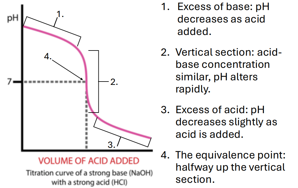 what are the 4 key features to pH titration curves ?