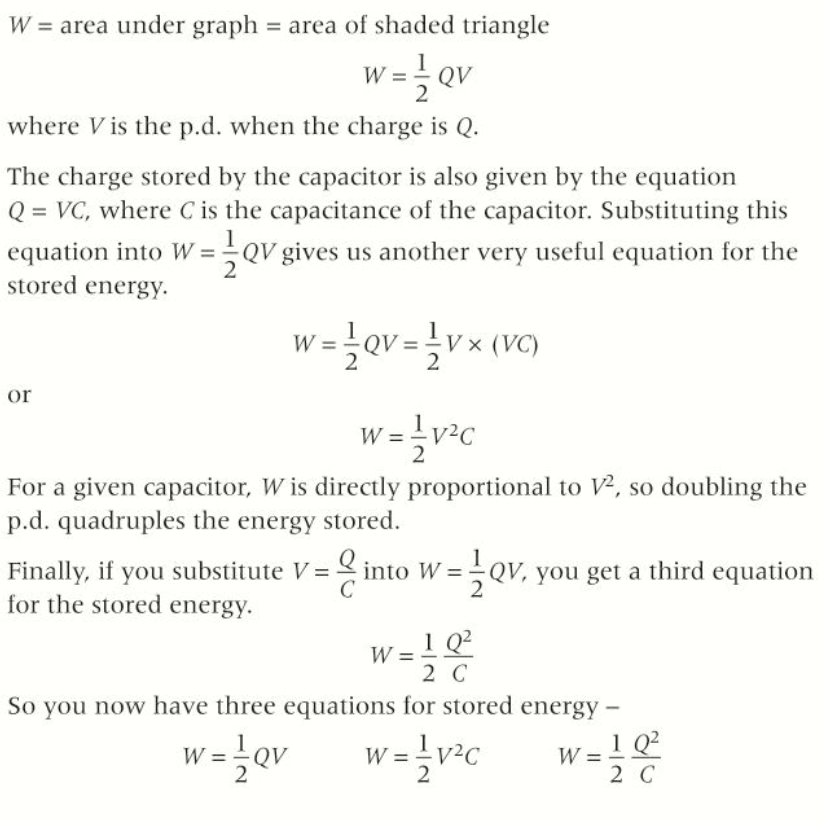 Define stored energy by a capacitor (potential energy)?