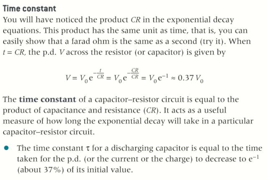 Define the time constant for capacitors.