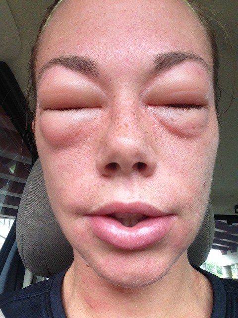 Localized areas of swelling beneath the skin, often around the eyes and lips, but it can also involve other body areas as well.