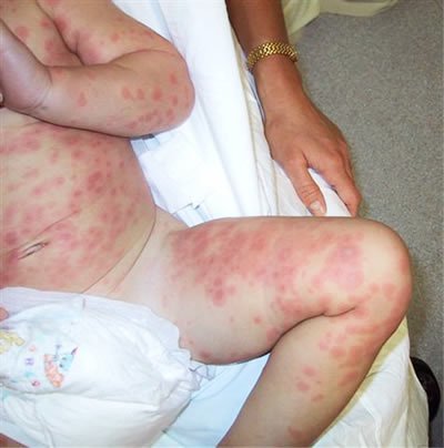 Small areas of generalized itching and/or burning that appear as multiple raised areas on the skin; hives.