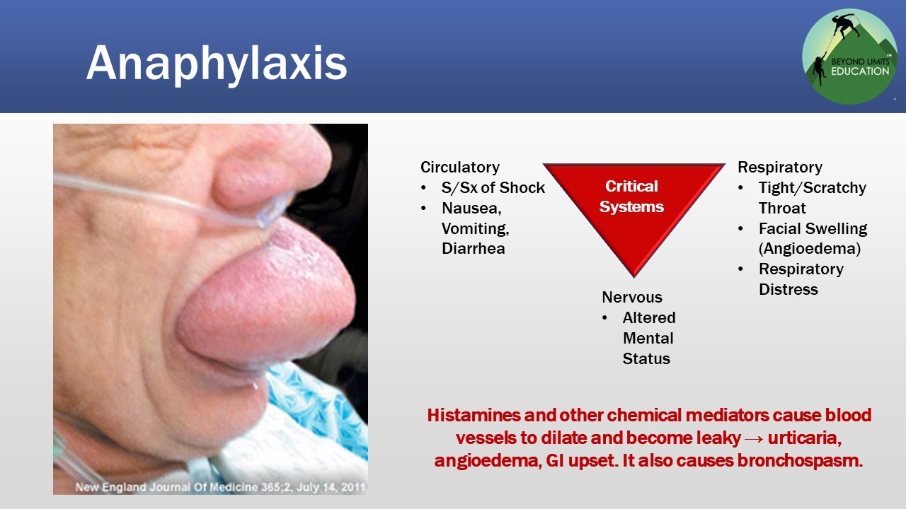 An extreme, life-threatening, systemic allergic reaction that may include shock and respiratory failure.