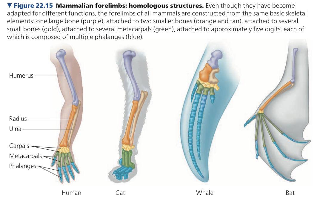 Homologous structures- represent variations of a structural theme that is sharred by descendents from a common ancestor