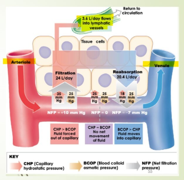 Know filtration and reabsorption through arteries, lymph tissue, and veins.