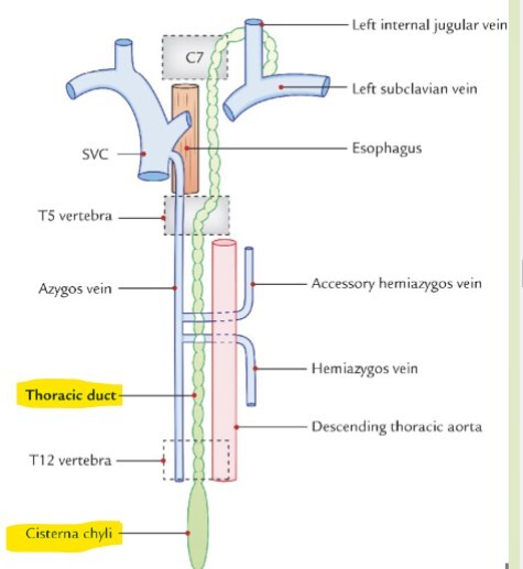 Thoracic Duct - empties into left subclavian vein and jugular vein