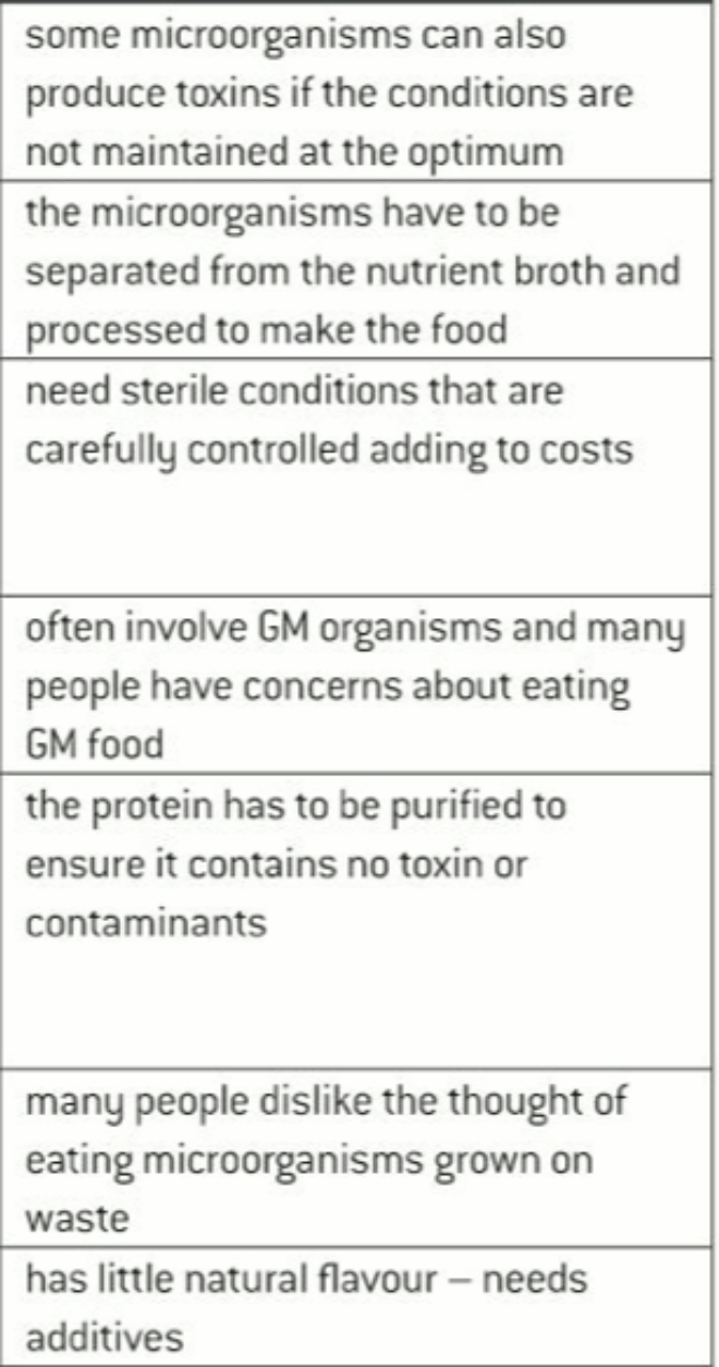 disadvantages of using microorganisms directly to make food for human consumption.