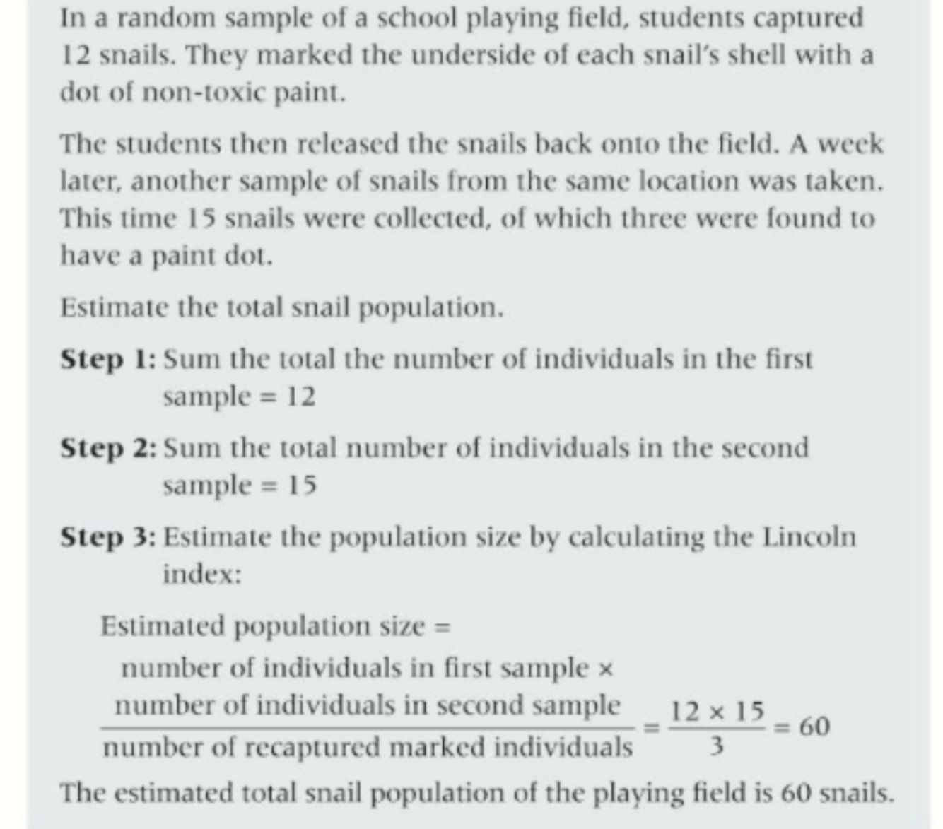 Once the abundance of all the organisms present in a habitat has been determined, scientists will often mathematically calculate the biodiversity present in a habitat. This can be done using