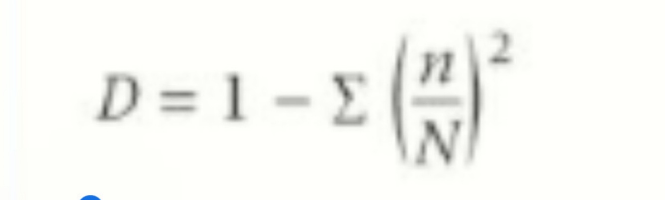 Simpson’s Index of Diversity always results in a value between 0 and 1, where 0 represents no diversity and a value of 1 represents infinite diversity. The higher the value of Simpson’s Index of Diversity, the more diverse the habitat.