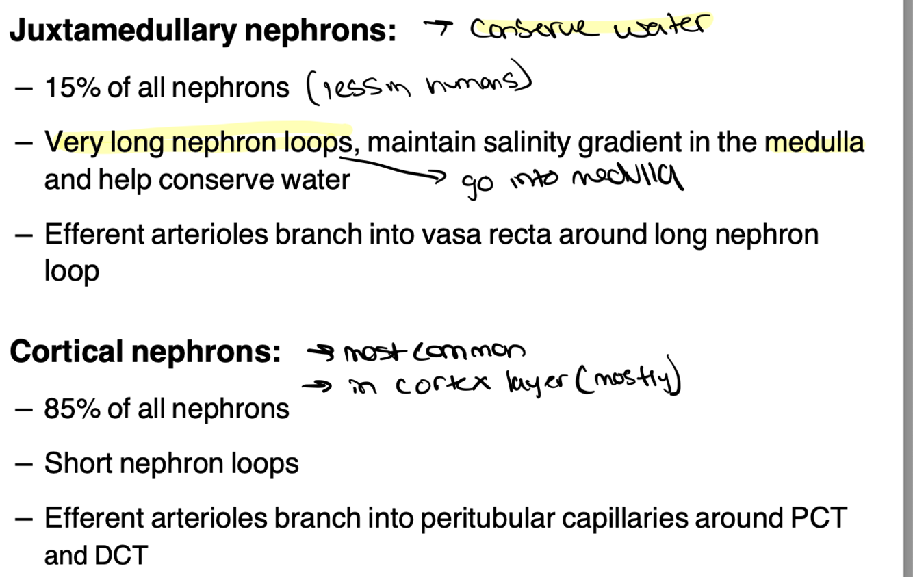 very long nephron looks, maintain salinity gradient in the medulla and help conserve water