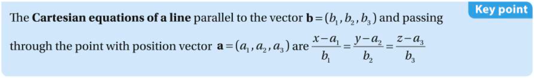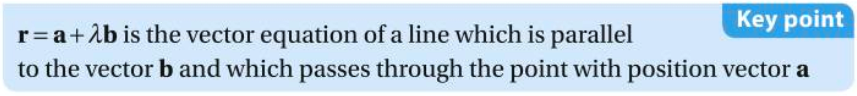 State the vector equation of a line, using a position vector, a, and parallel vector, b.