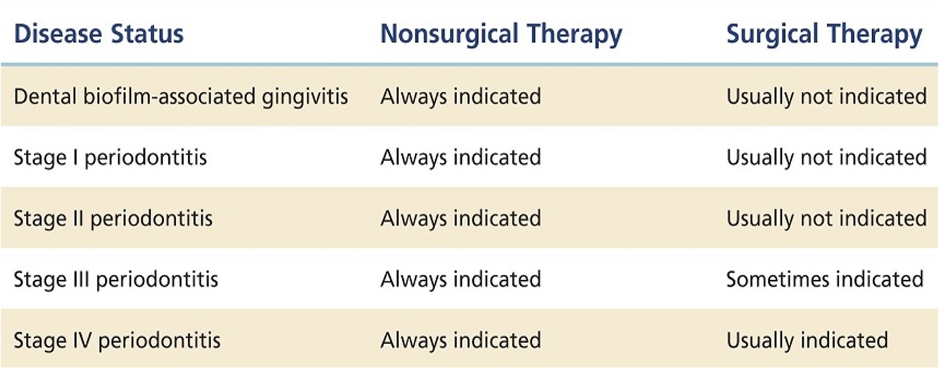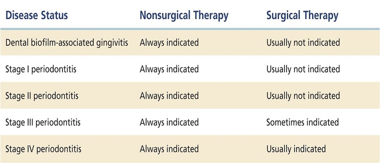 Indications for nonsurgical and surgical therapy