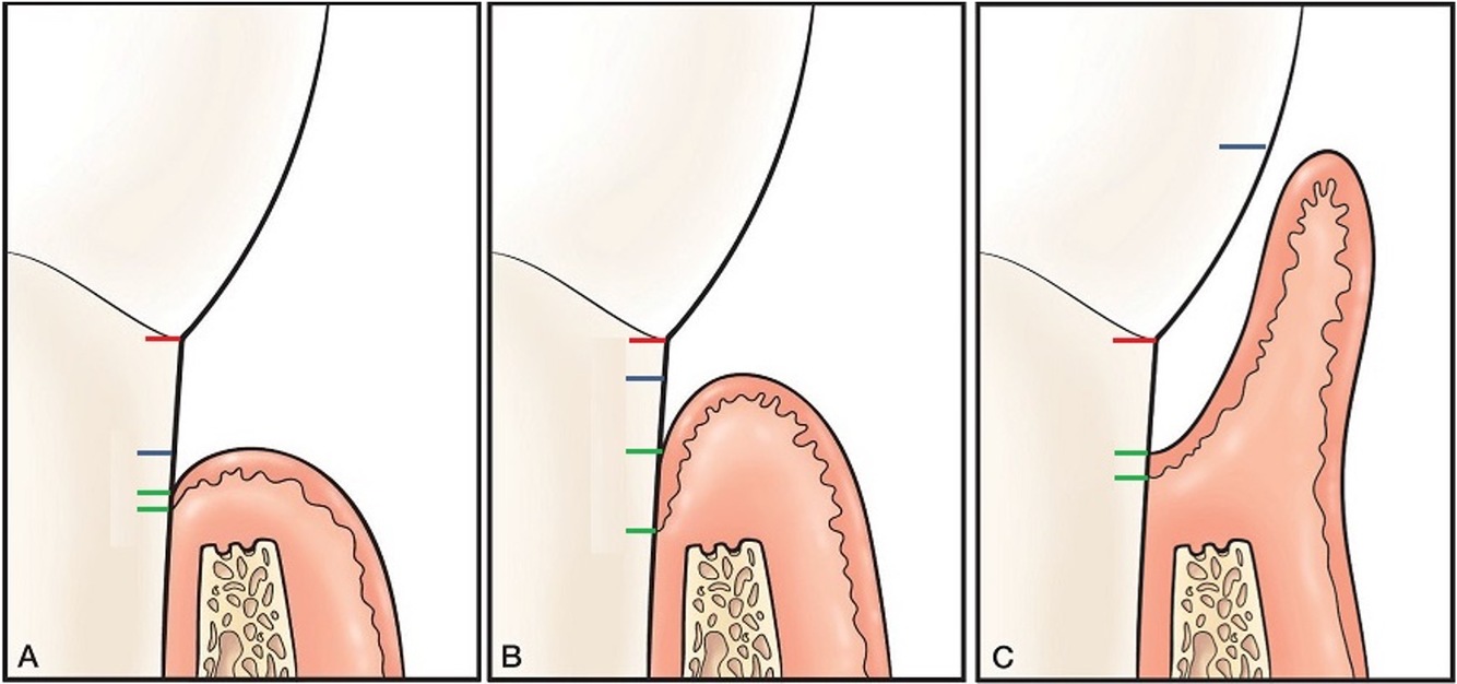 Describe the base of the pocket before and after nonsurgical therapy