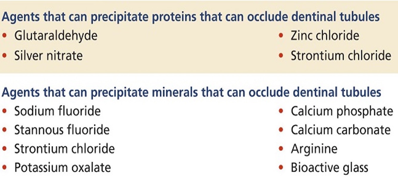 Tubule occlusion- In-Office: potassium oxalate, ferric oxalate, fluoride solution/varnish