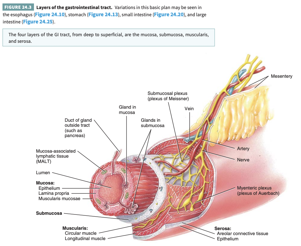 From deep to superficial, what are the four layers of the GI tract?