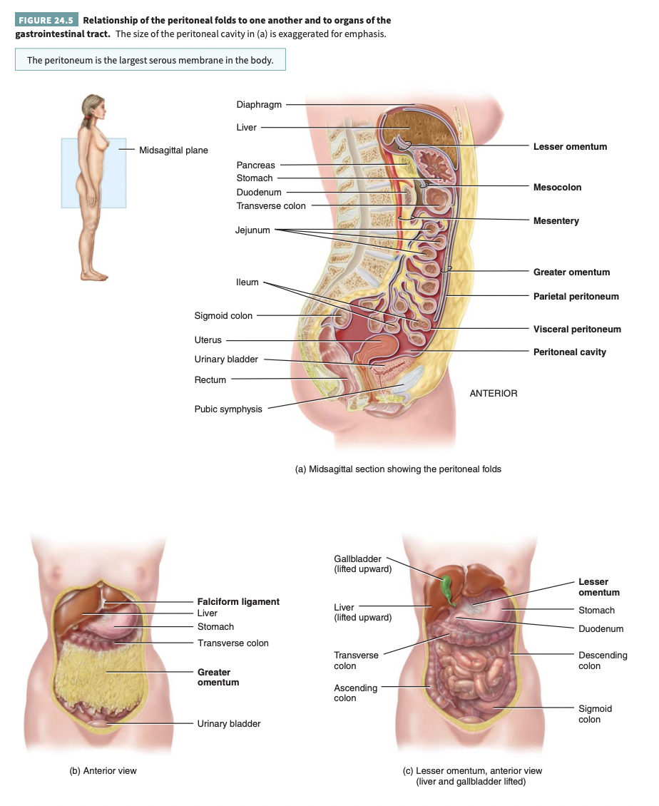 Visceral peritoneum: covers some of the organs in the cavity and is their serosa.